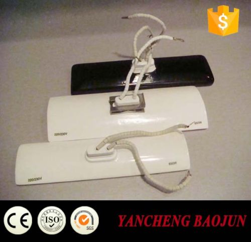 We are offering irceramic heater are made out of ceramics. These emitters have a nichrome (nicr) wire directly casted into ceramic and they produce temperatures from 300 deg f to 750 deg f. The wavelength produced with at these temperatures is between 3 6 microns. They feature a glazed surfaced to avoid for protection from oxidation and corrosion. Typically ceramic infrared heaters need 10 15 minutes to reach full operating temperature. A thermocouple can be casted directly into the ceramic. Ceramic infrared heaters come in different colors which may indicate the temperature range. Some of ceramic infrared heaters also change color when hot in order to easily recognize failed elements in a heater bank. They come in different shapes. A flat surface spreads the infrared energy over a wider area, while a concave surface focuses the energy more to a desired spot.ceramic infrared heaters are used for comfort heating, saunas and for industrial heating application requiring lower temperatures.