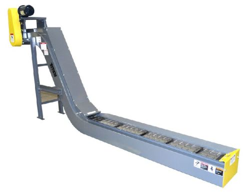 Our slat chain conveyor provides efficient conveying solution for sheet metal chips. The conveyors are designed inFlexible Conveyor Manufacturers configuration to pick up the chips from machine discharge and lift up to drop in the disposal bin. The slat chain is designed for low gap hinge arrangement to check chips falling between the chain links.