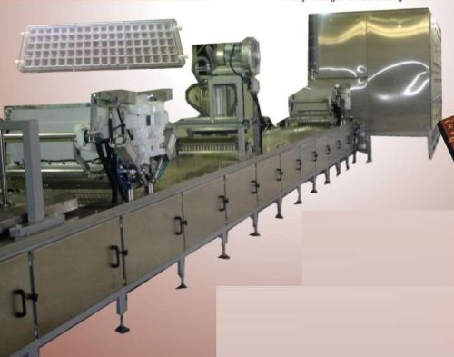 Features : Different mold sizes and mold types Shell making and inside cream filling by 1-2-3 depositors Up to 15 filling per minute