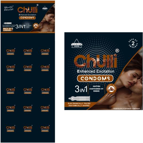 Contact SupplierWe are a leading Manufacturer, Exporter, Supplier, Retailer, and Distributor of premium Chulli Chocolate Dotted Enhanced Excitation Condoms. Made with high-quality latex sourced from India, these condoms offer a delicious chocolate flavor and a stimulating dotted texture for enhanced pleasure. Designed for single-use only, our standard-sized condoms are perfect for exciting intimate moments. Experience heightened sensations and maximum protection with our Chulli condoms. Elevate your pleasure with our innovative product that combines quality, flavor, and excitement in every use.