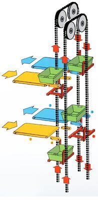 Circulating conveyors are ideal for high-throughput loading and unloading of goods across multiple levels—operations that are often found at large distribution warehouses and mail order fulfillment centers. NERAK circulating conveyors combine continuous movement via the paternoster principle and NERAK’s rubber block chain. The result: economical and efficient vertical conveying of totes, boxes, trays, and, parcels. Plus, NERAK circulating conveyors can lift up to 1,500 units per hour.