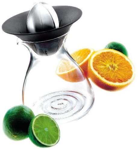 An efficient device for squeezing citrus fruits combined with a 0.6 litre mouth blown glass jug. The polished stainless steel core expels the juice and the plastic funnel filters out the pips before the juice, rich in fruit pulp, is collected in the glass jug. Dishwasher-proof.