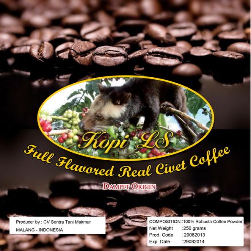 Ever tasted coffee civet? S-worth coffee civet this so special because particularity process, dearth; and citarasa unique not encountered in coffee of other types. Coffee civet having a balance of sweet, bitter and acid, feels longer, ' fruty', not defective; not ' earthy' insurance because cleanliness when bulan coffee beans. Besides content low protein on coffee civet citarasa produce a superior. It happens because when the process of digestion in the stomach civet, protein undigested and out of coffee beans. Proteins on coffee cause a bitter a when processing roasting. So the lower levels of a protein in coffee becomes less ' bitterness' the coffee. Renown this coffee in southeast asia has long been known, but just be famous widespread in interested people coffee gourmet after publication in the 1980s. Coffee beans civet is the the sixteenth in the world, reached usd100per450 grams. We sell cheap and ascertained its authenticity. Good try