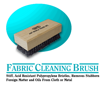 Fabric Cleaning Brush Hardwood handle brush has stiff black polypropylene bristles that resist acid. Remove stubborn foreign matter and oils from cloth or metal. Perfect for use with mesh prep when getting screen ready for image. A must in every shop. Also used in PC manufacturing departments. Clog Removing Brushes Remove stubborn mesh clogs in all types of mesh and wire cloth. Wooden handle with brass bristles can be used with cleaners.