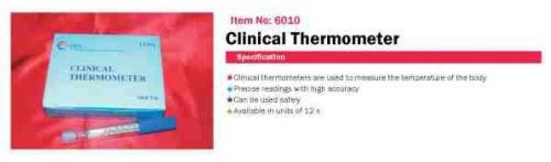 Contact SupplierClinical Thermometer that we offer is manufactured under the supervision of medical experts and thus, it accurately measures human body temperature. We are one of the prominent Manufacturers, Exporters and Suppliers of Clinical Thermometer from England. We have well-equipped production unit that enables us to produce Clinical Thermometer in bulk at a time. In addition to this, due to our vast distribution network, it has always been an easy job for us to deliver retail as well as bulk orders for Clinical Thermometer on time.