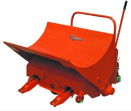 CLOTH ROLL DOFFING TROLLEY-FOR NARROW ALLEY FEATURES: 1.Fabric roll lifting and transport trolley suitable for cloth roll lifting and carrying from loom to inspection area. 2.Capacity of trolley in the range of 400-600kgs.and up to 600mm dia. 3.Cloth roll picked up from floor or from loom and raised vertically for transportation by easy manual operation of hydraulic device and handle. 4.Trolley suitable for small gang alleys in between looms.