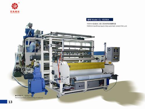 Contact Supplier1500mm Co-Extrusion Stretch Film Plastic Wrapping Plant Model CL-6590A This line co-extrusion stretch film plastic plant is designed for 1500mm 2 or 3 layers co-extrusion casting stretch film,to adopt LLDPE as raw material.This semi-automatic co-extrusion stretch film plastic wrapping plant needs to change paper core and uploading finished wrap stretch film by hand, but it is very easy to operate, the machine is long-life and energy saving. Co-Extrusion Stretch Film Plastic Wrapping Plant Features : 1.Screw is adopted special mixing function and high plasticizing capacity design, to ensure good plasticizing, uniformity color and luster. 2.The bi-directional lopp design and helix runner inside cooling steel roller is adopted to ensure even temperature of roller surface. 3.Winding roller parts---aisle-platform,it is convenient and easy to adjust thickness and quickly change width of film,also can not stop machine to cut film. Co-Extrusion Stretch Film Plastic Wrapping Plant Workshop  Wrap Stretch Film Application The wrap strech film produced by this pallet wrap stretch film machine can be used to pack goods, to prevent loosening and anti-dust etc.  Co-Extrusion Stretch Film Plastic Wrapping Plant Certificates Co-Extrusion Stretch Film Plastic Wrapping Plant   Warmly Welcome To Come To Our Factory ,To Get More Details About This 1500mm Pallet Wrap Stretch Film Making Machi
