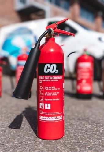 Carbon Dioxide Extinguishers are filled with non-flammable carbon dioxide gas under extreme pressure.