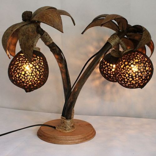 Polished Carved Coconut Shell Table Lamp, Size : Standard
