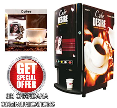 coffee vending machines for your office or commercial establishment. Coffee vending machines offered by cafe desire are highest selling and best coffee machines available in the country. These automatic coffee vending machines are very good, convenient and ideal for places like small, medium and large offices, educational institutes, industrial canteens, hospitals, software companies, hotels, restaurants, malls, cinema theaters and many other places. On just press of button, these fully automatic vending machines can dispense hot and cold beverages like coffee, lemon tea, chocolate drink, tomato soup, plain tea, green tea, ginger tea, diet coffee, diet tea, low sugar coffee and low sugar tea. No need of milk, sugar, tea or coffee powder, just load our instant coffee premix or instant tea premix in our vending machine and press a button. Your great tasting coffee and tea is ready to drink. These best in class vending machines for coffee and tea are user friendly, you dont need an exclusive operator to run this coffee & tea vending machines. Features: automatic coffee / tea / flavor4 vending machines. Suitable for cafe's and small, medium & large offices, schools, colleges, hospitals, hotels, canteens, bakeries, cinema theaters, corporate offices.