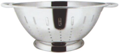 Colander is a bowl-shaped kitchen utensil with perforations for draining off liquids and rinsing food. Kitchen colanders are used for washing or draining all kinds of vegetables and fruits, beans, or pasta and for straining solids from stock. Made of solid stainless steel, colanders are available in different sizes.