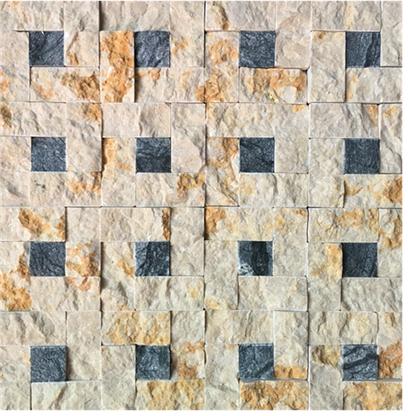 Length(mm):305 Width(mm):305 Colour:GOLDEN Material:Natural Stone Suitable For:Floors,Walls A mosaic is a piece of art or image made from the assembling of small pieces of colored glass, stone, or other materials. It is often used in decorative art or as interior decoration. Most mosaics are made of small, flat, roughly square, pieces of stone or glass of different colors, known as tesserae. Some, especially floor mosaics, are made of small rounded pieces of stone