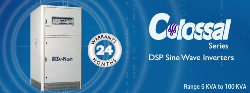 Contact SupplierSu-Kam's DSP Sine Wave Inverter – Colossal Series, powered with reliable, regulated and stabilized Pure Sine Wave Output is a complete power generation system that is suitable for all types of commercial establishments and is capable of running everything from Lights to Air Conditioners and Lifts to Elevators, in a most cost effective manner.