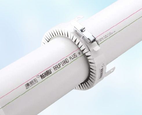 COMPACT FIREPROOFNG COLLAR The fire behaviour is in accordance with material class B2 in accordance with DIN 4102.REHAU fireproofng collars are available for passage of the RAUPIANO PLUS pipe through fire-resistant ceilings or walls.The national fire-protection regulations and the respective applicable codes/regulations of building practice are to be observed here
