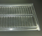 We offer component for refrigerator. Part size: 537x352x29mm part material: ps cav. Qty: 1x1 ejection: ejection black + air poppet ejection tool size: 800x550x395mm insert steel: 1.2344 gate: valve gate.