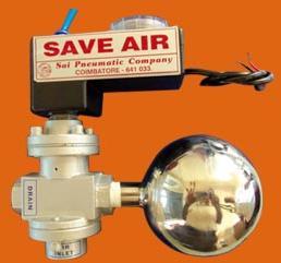 Save Air" save Compressed Air at the time of Drain. "Save Air" have LED signal "Power On" and "Drain Open". At Drain duration time the three way valve one port should be closed by Pilot air and the same time the condensed water and Oil particles Stored in SS Bowl will drain at other Port Without Air Loss.