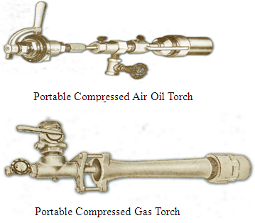 These torches are used as localized heat source. These are light weight and easy to operate. � Both Oil and Gas version is available. � Compressed air is used as atomizing media. � Combustion air is from atmosphere. Application: � Pre-heat for Soldiering Brazing Welding � Pre-heat Dies and Moulds � Heating for hand forging � Pre-heating small ladles and crucibles