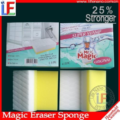 high density melamine spongemagic erasernano foam made by our company is more compact than normal sponge,makes every small particle smaller than one ten thousandth of a human hair,after wet by clear water,they like countless micro dust collectors work to absorb the stains.