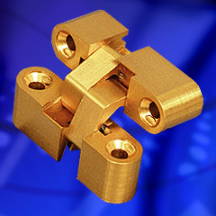 Concealed Hinge. The small size of the O Type, 0.240" wide, makes it the perfect hinge for the most compact of components within aircraft interiors. Fits easily into honeycomb material. Measures 0.240" x 1.250". * “Alum” indicates the color “clear brushed aluminum.” (left) 95-PAR-AV-O (Gold)