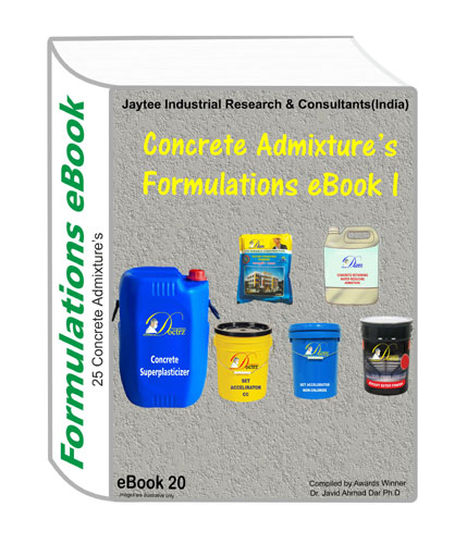 Construction is growing at high speed world over so is construction admixture use growing accordingly, easy to make construction admixture formulations have been kept in this book for planning of construction admixture manufacturing unit as under: