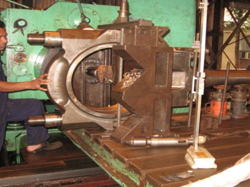 Connnecting rods of all types of auxilliary engines are re-conditioned by lapping the mating faces (serrations) to over 95% contact surface and re-machining the bore to maintain circularity of crank-pin bearing bore within 10 micron.