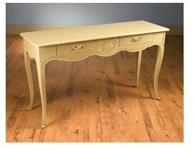 CONSOLE Item ID: 41735 Distressed parchment painted finish with two drawers.Dimensions 31x55x18 Weight 0.0000 lbs