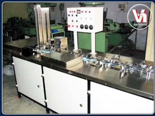 These Machines are designed to operate on the Continuous Product movement in a Pocket conveyor. All operations like Product insertion end flap folding, glue application sealing etc are carried out as the conveyor moves through various stations. Timing and sequencing of various operations is achieved through Indexing Cams.
