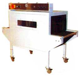 Convection Style Shrink Tunnel Standard features include: Variable Speed Conveyor Cogged Drive Timing Belt For Safety Dual Temperature Read Out Top And Bottom Calrod Heaters Top and Bottom Dual Speed Fans Back-Lighted Viewing Chamber Dual Pane Viewing Window Automatic Cooling Chamber Durable Powder Coat Finish Lockable Casters