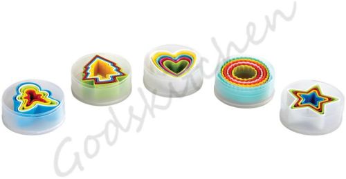 The cookie cutters are made from durable plastic and have no tight corners, so the dough is easily separated. There are five different sizes available in five different shapes.Available in Shapes - Ginger-man, Christmas Tree, Heart, Curvy Round and Star