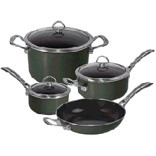 utilizing chantal's patented copper-fused technology this german made 7 piece set includes a 10 inch fry pan, 1.7 and 3 qt sauce pans with lids and a 6 qt pot with lid. These copper pots eliminate hot spots while cooking for more even heat. The cooking surface covers with a high quality, non stick enamel which is pfoa free, lead-safe, and cadmium safe. The tempered glass lids allow for easy viewing of cooking food. These lids are oven safe up to 375 degrees f.