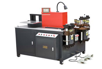 1ćintroduction the machine is equipped with punching cutting bending three units,the three units can work at the same time,and will not influence each other.the punching unit is turret structure,the bending unit is closed on the top,the bending angle is with storage function.the main function is processing different types of copper(brass) aluminum bus bar.when it is working,worker just need to choose the unit,then machine will cutting and punching(holes,long holes square holes special holes),horizonal bending,vertical bending embossing flatting torsional hemp flowers ect.