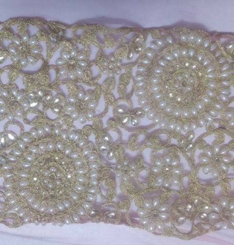 We offer cording embroidery fabrics. Round nylon net fabric..............golden cord embroidery...........handwork stick with white pearl ,daimonds and stone