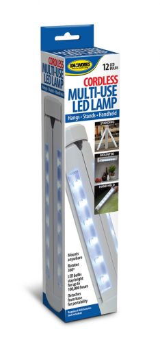 CORDLESS MULTI-USE LED LAMP 13 super bright LED lights. Mounts, stands & handheld. Portable - quick release for lamp to use as free standing tripod or handheld. Mounts anywhere - vertically and horizontally. Includes an easy mount bracket for use under cabinet or in a closet ID JB7101 BRAND IDW-ETL CASE PACK 12 CASE WEIGHT 9.45 CASE LENGTH 12.8 CASE WIDTH 8.6 CONSUMER PACK COLOR BOX CONSUMER PACK DIMENSIONS 12.2 X 2.7 X 2 UPC EAN NUMBER 017874014361