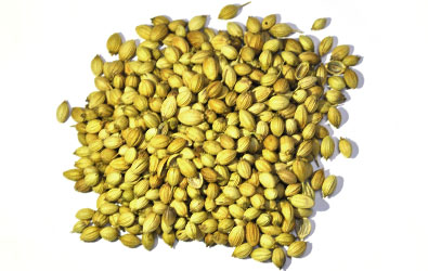 Although sometimes eaten alone, the seeds often are used as a spice or an added ingredient in other foods. Coriander is a pleasantly sweet spice with a lemony top note. It is commonly used in chili and curry dishes. The coriander plant produces both a spice and an herb. The leaf is known as cilantro and when the plant goes to seed, we harvest the coriander seed. Coriander is used in many types of ethnic cooking, such as Latino, Middle Eastern, and Indian. In this country, it is also used to flavor cookies, pastries, breads, sausages and corned. Coriander Seeds are used as diuretic and for general digestive aid¦