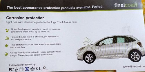 corrision technology. Fight rust with electromagnetic technology.. the future is here... scientifically proven to reduce rate of corrison on automatic sheet metal by up to 99.7% patented pulse wave is effective, yet harmless to you and your vehicle. total perforation protection even from stone chips and scratches. an eco-friendly alternative to messy petrochemical sprays. protect areas where sprays cannot reach. independently tested by recognised organisations globally