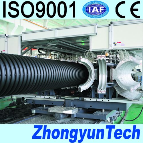 nnovative mould blocks cooling solution of Model 1200H corrugator from ZhongyunTech brings a fast and high efficient cooling of mould blocks, substantially increasing the production efficiency of PE double wall corrugated pipes.