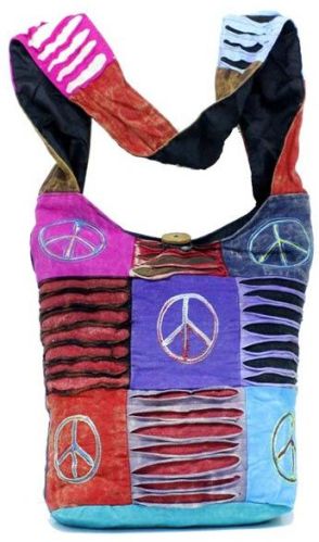 We offer Cotton Canvas Multi Color Ripped Nepal Indian Sling Cross Body Long Shoulder Krishna Mart Bag.This Brand New Shoulder Bag is fully lined with heavy cotton fabric. This Bag closes with a Zipper Inside,It is Quite Durable & Spacious,it Measures approximately 15" wide and 15" High. Shoulder Strap Measures approximately 5.5" Wide and the total length of the bag including strap is 36" long makes the bag carry load comfortably and falls on the hip.