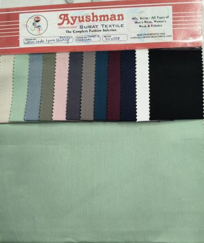 Cotton code lycra marshal shirting fabric blends the comfort of cotton with the stretch of Lycra, resulting in a durable and flexible fabric ideal for shirts. Its unique composition offers a smooth feel against the skin while providing ease of movement. Perfect for everyday wear, this fabric combines style with functionality, making it a versatile choice for various occasions.
