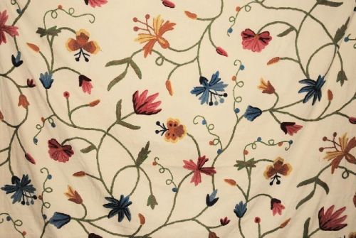 Cotton Crewel Embroidered Fabric Butterfly Cream, Multicolor?