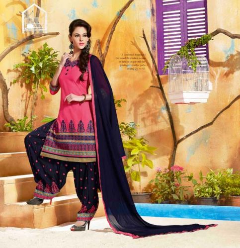 We are offering cotton embroidered pink & black color patiala suit-574 fabrics : cotton type : unstitch suit dispatch time : ready to ship moq :single pieces avilable.