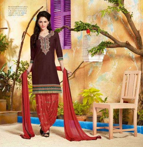 We are offering cotton embroidered brown & carmine color patiala suit-574 fabrics : cotton type : unstitch suit dispatch time : ready to ship moq :single pieces avilable.