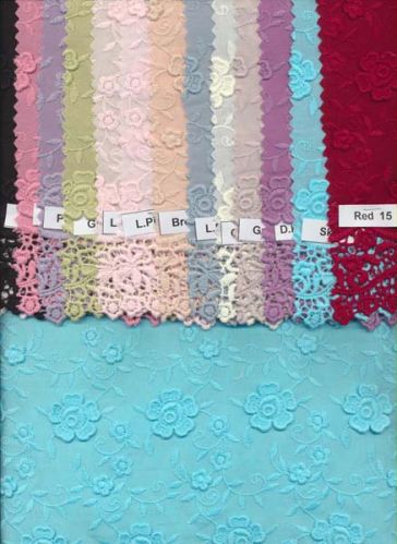 We offer schiffili embroidery fabric - can do in cotton, polyester in 4142" 52" chemical lace applique and various embroidery. packing : 15 yards per peice