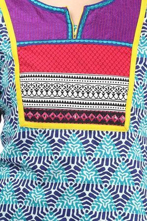 In order to keep up the high-standards, we ensure from the very beginning that the raw materials used are as per the international standards. By this, we are capable of delivering the finest array of products. We are tagged as a prominent name for supplying Dashmesh Blue Printed & Embroidered Kurti in the national market.