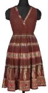 We are offering Cotton Ladies Hand Stamped Dress. code : d-16 description : cotton hand stamped dress.the gold print on the dress is hand done with wooden blocks.