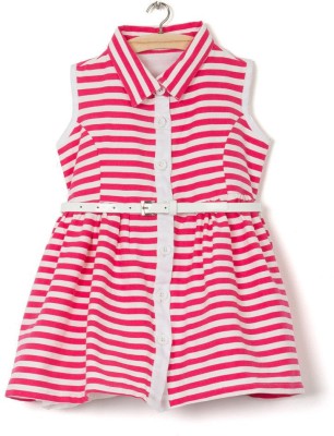 Sleeveless Striped Fuschia Pink Party Dress. Styled with a nice collar with a premium white belt. Ages 1-6 yrs