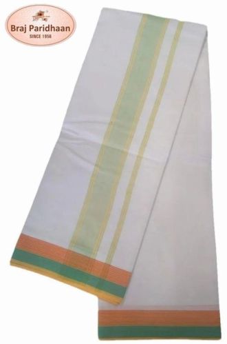 Braj Paridhaan Plain Cotton White Dhoti Angavastram Set Casual Wear