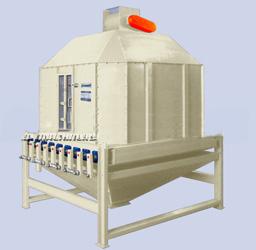 pellet cooler is an important machine used to cool the wood pellets and animal feed pellets discharged from pellet mill which is of very high temperature and much moisture. The air flow direction in the cooling machine is opposite to the flowing pellets, thus leading to evaporation of moisture from the pellets. While moisture evaporation, heat is also removed from the pellets.