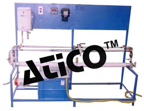 the apparatus consist of a heat exchanger mounted on a rigid ms structure frame with a control panel. A centrifugal pump and a sump tank made up of non-corrosive pvc are placed at bottom. A separate hot water boiler is supplied with the equipment. It is fitted with a level switch, relief valve. Hot water from the boiler is fed into one end of the inner tube, which gets cools after passing through the length of the tube. Cold water is circulated through the boiler tubes with the help of centrifugal pump.