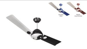 Details : Unique two-blade fan adds elegance to your home decor Three-layered metallic paint finish Lacquer coating provides longer life Full copper motor & aluminium blades for durability Powerful motor with silent operation Wide blades for high air delivery