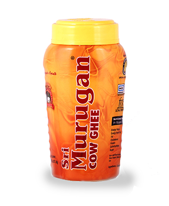 About Product Murugan Ghee is made from fresh cream and is 100% natural.It has typical rich aroma, granular texture and is used in dishes, thereby increasing their taste and aroma. Unit 500 ml Packaging